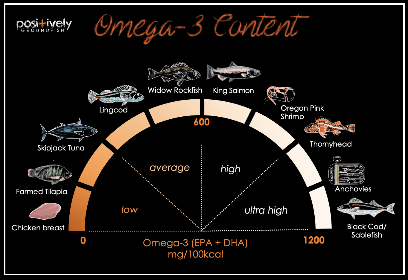One such local species, Black Cod (also known as Sablefish or Butterfish) is the absolute King of Omega-3. This succulent species contains an astonishing 1792 mg of Omega-3s (EPA and DHA) per 100g of raw fillet. For comparison, that is about twice as much as wild king salmon. That means, if you eat one 6-ounce (170mg) portion of Black Cod, you get over 3,040 mg of EPA and DHA – that’s equivalent to 6-8 fish oil capsules. It’s buttery and flakey, it’s a sustainably managed fishery, and it's nature's secret weapon for supercharging your brain health!